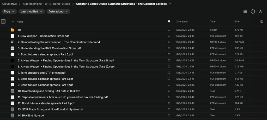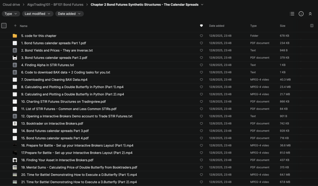 Download BF101 Bond Futures by AlgoTrading101 and learn how professional traders approach bond futures, yield curves, and calendar spreads with a structured, market-maker style framework. This advanced bond futures trading course shows you how to build synthetic positions, design spread strategies, and understand how interest rate expectations move bond futures prices in real markets.
